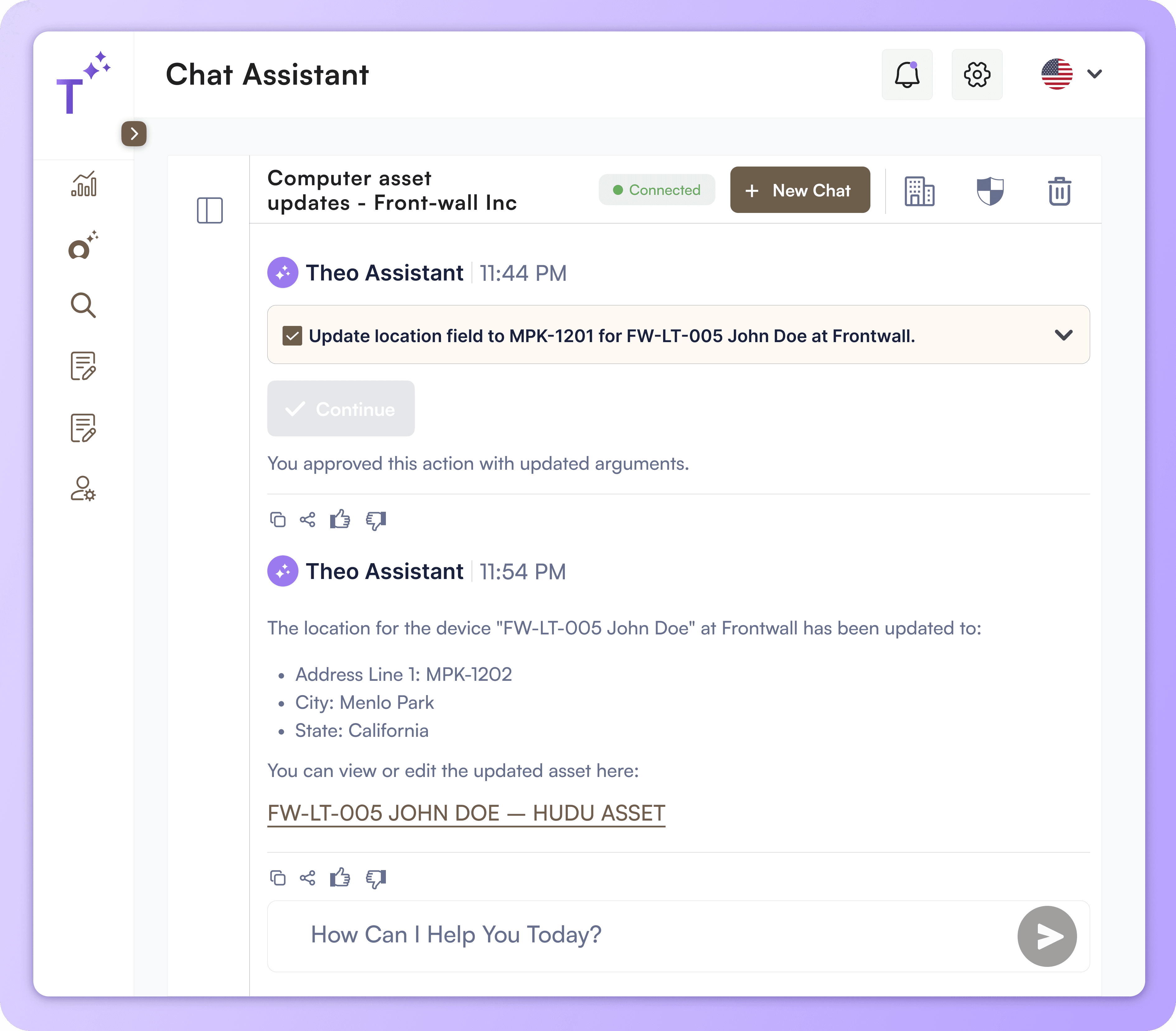 Theo starts resolving tickets with technician oversight. You see every action before it's done.
